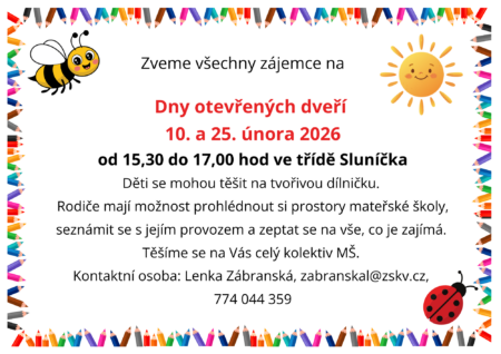 Vedoucí učitelka MŠ: Mgr. Lenka Zábranská zabranskal@zskv.cz, tel. 774 044 359